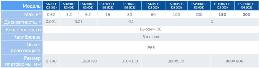 Спецификации всех моделей лабораторных весов серии FS приведены в таблице