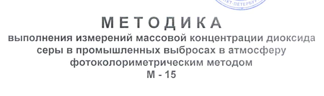 М-15 МЕТОДИКА выполнения измерений массовой концентрации диоксида серы в промышленных выбросах в атмосферу фотоколориметрическим методом
