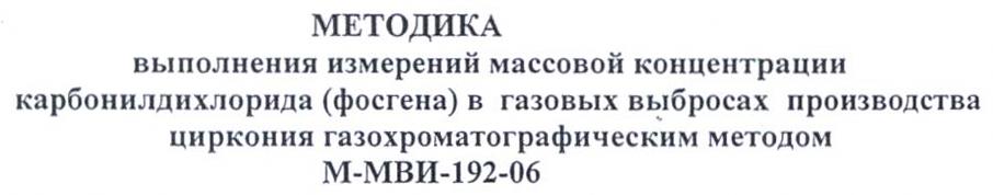 М-МВИ-192-06 Методика выполнения измерений массовой концентрации карбонилдихлорида (фосгена) в газовых выбросах производства циркония газохроматографическим методом
