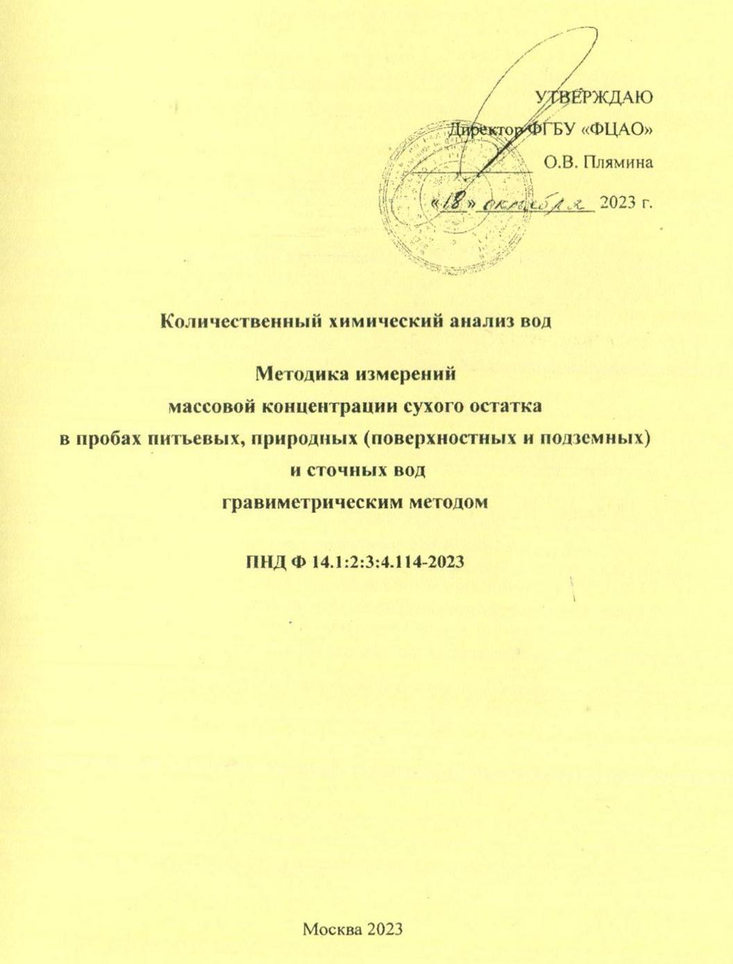 Природоохранный нормативный документ ПНД Ф 14.1:2:3:4.114-2023