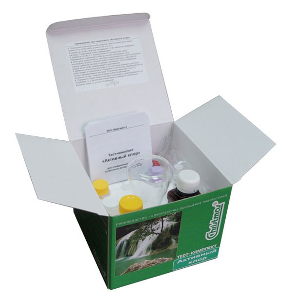предназначен для экспрессного определения массовой концентрации активного хлора в свободной и связанной формах в питьевой, природной и нормативно-очищенной сточной водах в полевых, лабораторных, производственных и др. условиях.