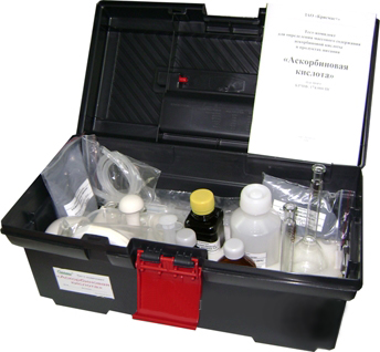Комплект может быть использован для определений витаминной ценности продуктов питания, для сравнительного определения аскорбиновой кислоты, исследования динамики изменения содержания аскорбиновой кислоты в зеленых культурах в зависимости от времени термообработки.