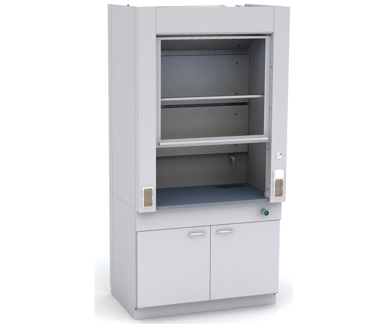 При необходимости в нижнюю тумбу шкафа вытяжного устанавливается вентилируемая химически стойкая капсула из стеклопластика.
