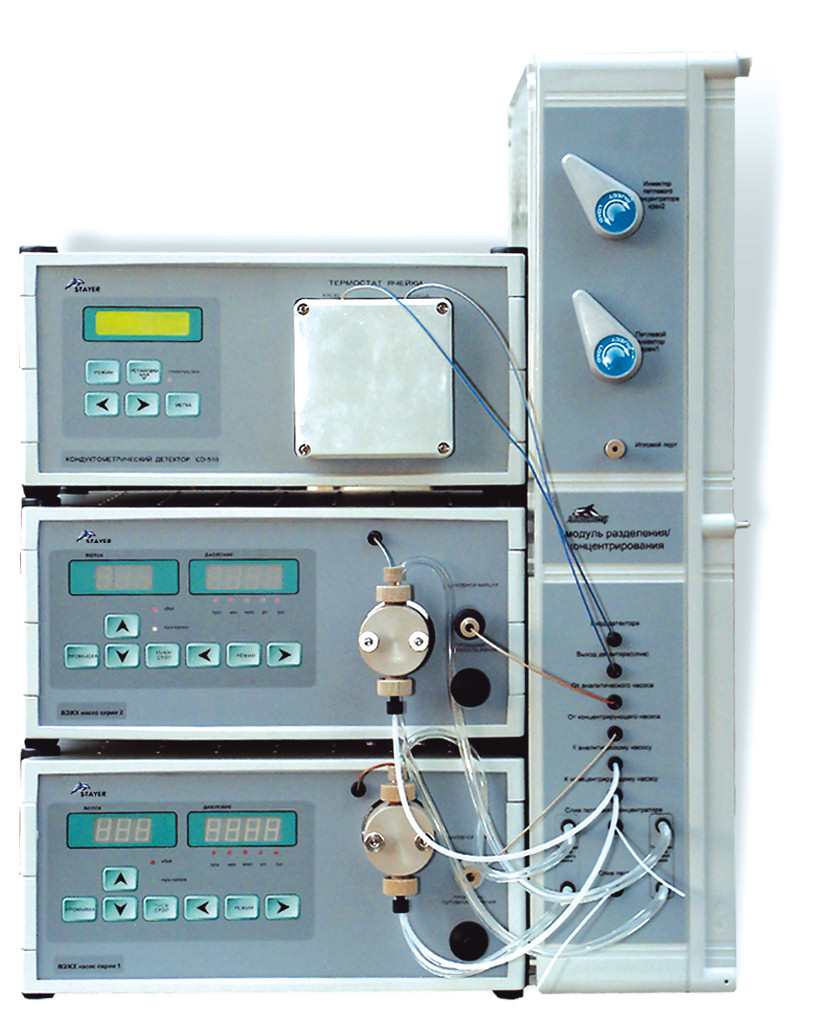 Специализированная ионная хроматографическая система с двумя независимыми жидкостными трактами (концентрированием в линии) предназначенная для анализа следовых количеств (< 1 мкг/л) неорганических анионов и катионов в водных растворах (в том числе в особо чистых технологических водах тепловой и атомной энергетики)